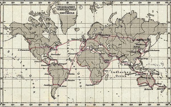 From the mid-1850s submarine cables were laid between continents. The first long distance cables ran