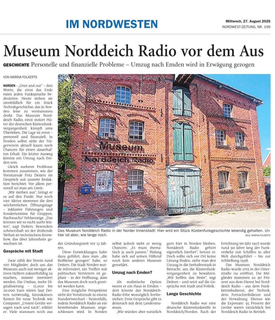 Museum Norddeich Radio in "schwerem Wetter" - Nach Bericht der Nordwest Zeitung NWZ